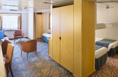Suite con due letti singoli convertibili in letto matrimoniale, balcone privato, salotto (alcuni con divano letto), vasca da bagno, aria condizionata, TV via satellite, telefono, phon, cassaforte, frigo bar. Dimensioni: 22 m2.