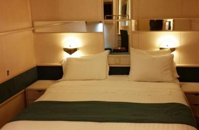 Camera vista mare con due letti convertibili in matrimoniale, salottino, aria condizionata, TV via satellite, telefono, bagno con doccia, phon, cassaforte. Dimensioni: 14 m2.