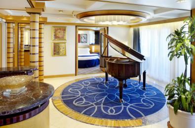 Suite con camera da letto separata con letto matrimoniale, balcone privato con vasca idromassaggio, vasca idromassaggio, soggiorno con divano letto, pianoforte a mezzacoda, sala da pranzo, lettore cd/dvd, frigo bar, angolo bar e servizio di portineria. Dimensioni: 93 m2.